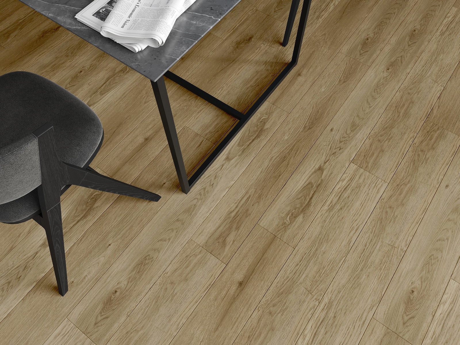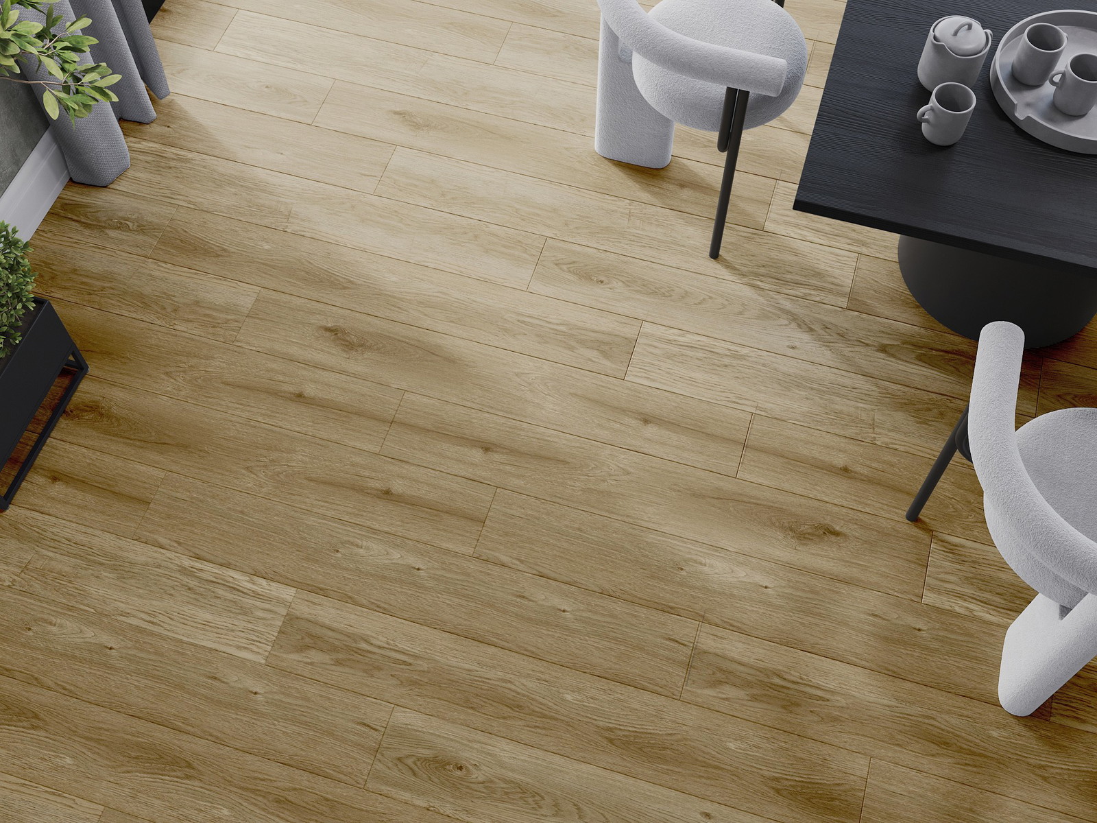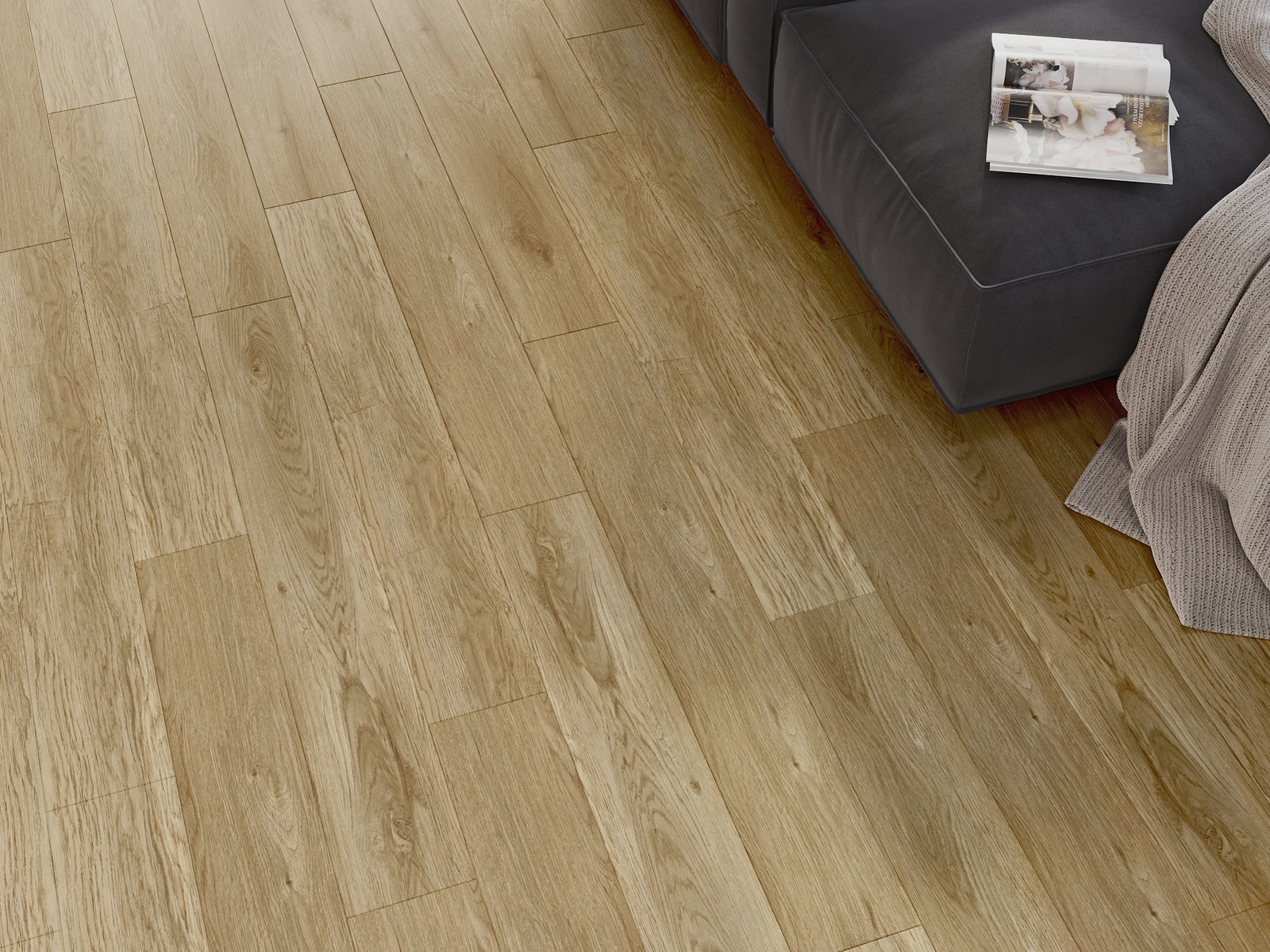 Pardoselile au o îmbinare pe cele 4 laturi - fiecare parte a fost frezată astfel încât, după montaj, să rezulte o conexiune în formă de V. Acest design face ca pardoseala să capete o structură mai pronunțată, adăugându-i profunzime și un caracter estetic. Acest efect este deosebit de apreciat în aranjamentele moderne, unde detaliile subliniază aspectul unic al interiorului.