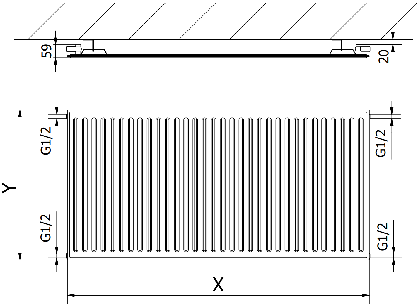 Distanța canalelor verticale de apă: 33,3 mm