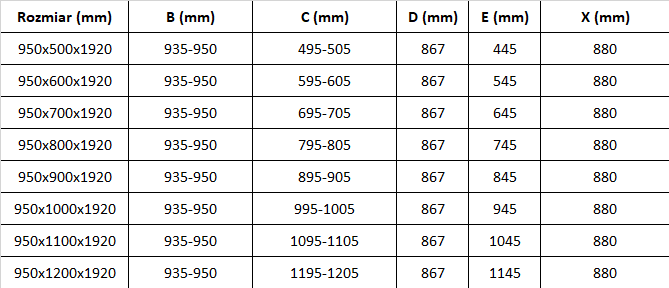 Dimensiune: 95x90 cm (uși 95 cm, perete 90 cm)