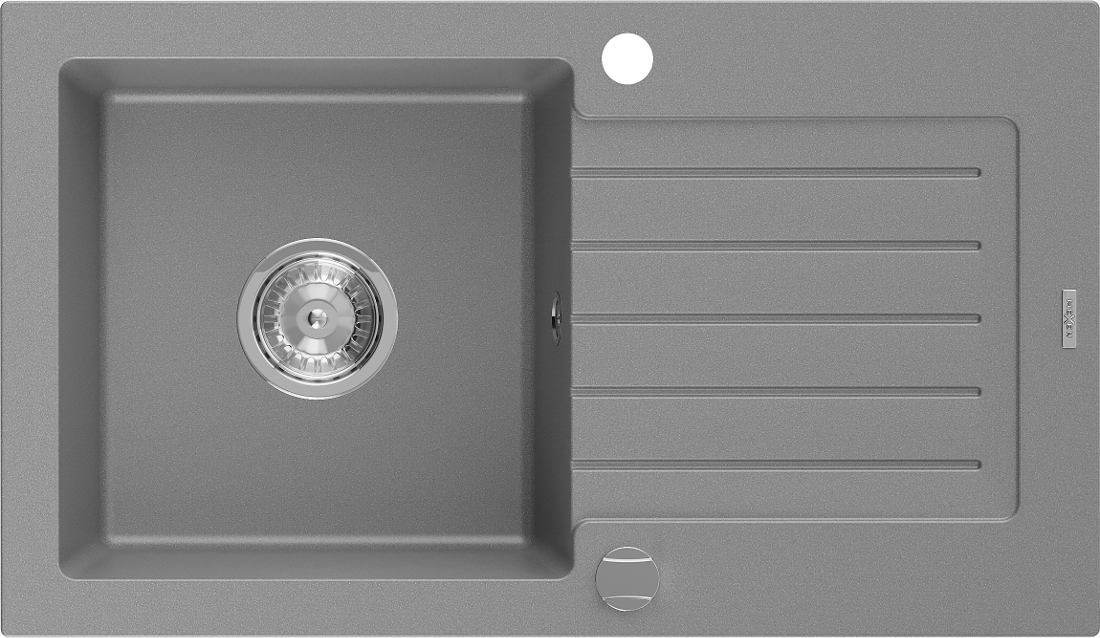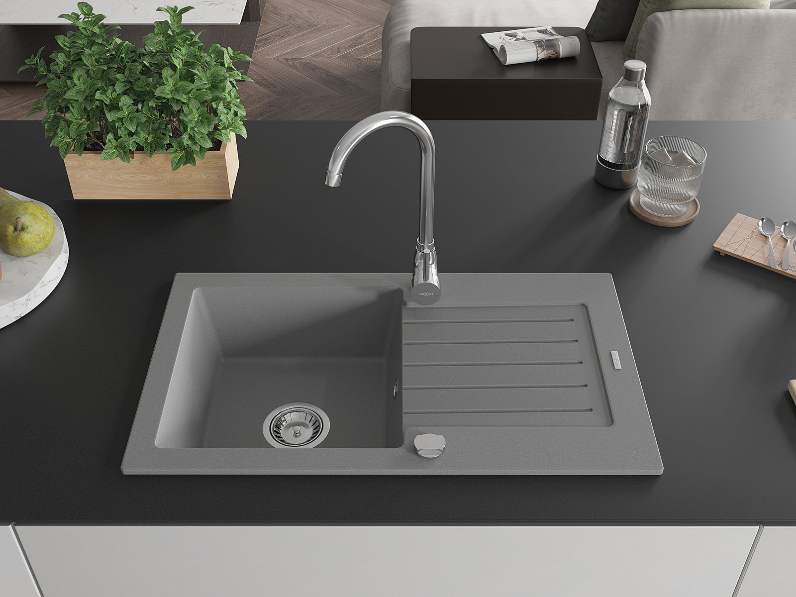 Mexen Pablo chiuvetă din granit cu 1 compartiment și scurgător 752 x 436 mm, gri, sifon crom - 6510751010-71