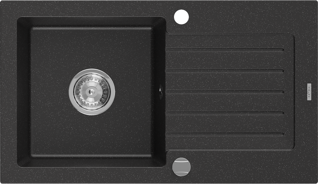 Mexen Pablo chiuvetă granit 1-cameră cu scurgător 752 x 436 mm, negru/argintiu metalic, sifon crom - 6510751010-73