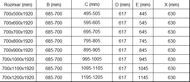 Dimensiune: 70x90 cm (ușă 70 cm, perete 90 cm)