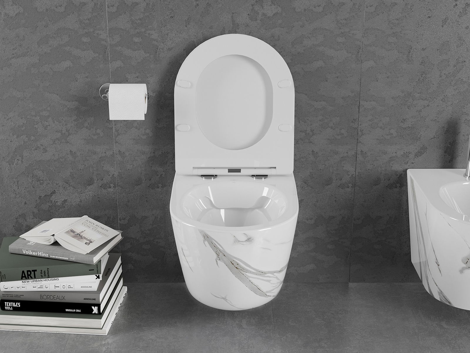 Capacul WC cu închidere lentă este echipat cu un sistem special care încetinește căderea sa rapidă și bruscă. Sistemul elimină eficient problema trântirii capacului și minimizează zgomotul, asigurând închiderea lină și silențioasă a toaletei.