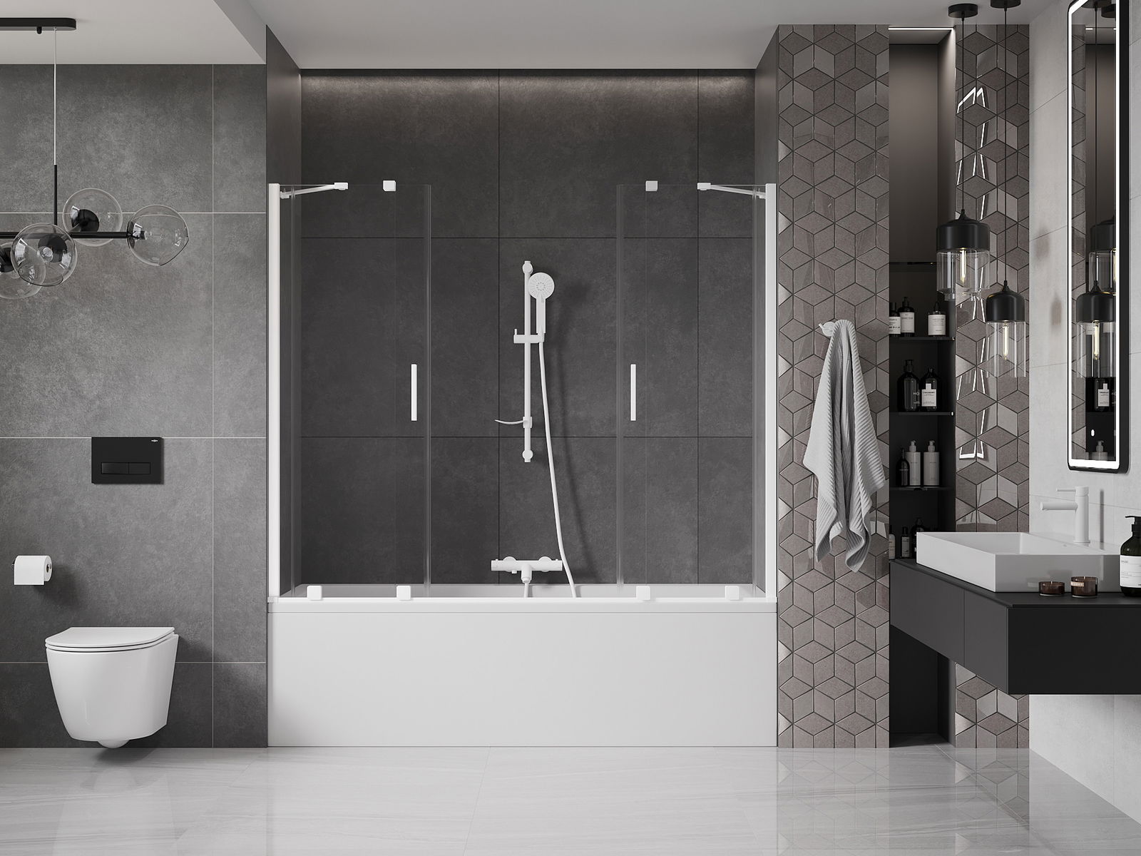 Mexen Velar Duo paravan de cadă cu 2 aripi glisante 190 x 150 cm, transparent, alb - 896-190-000-02-20
