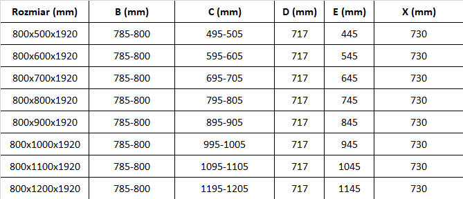 Dimensiune: 80x90 cm (ușă 80 cm, perete 90 cm)