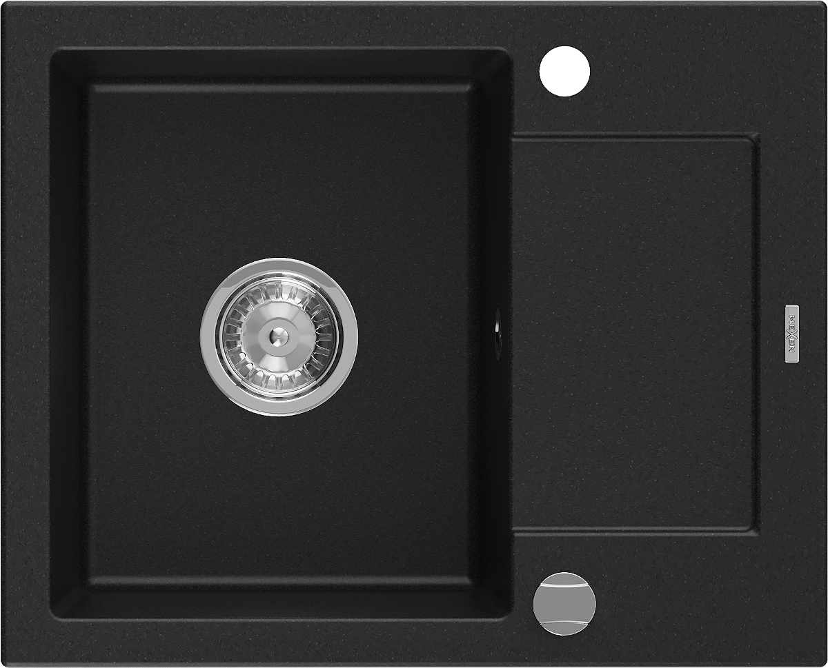 Mexen Enzo chiuvetă de granit cu 1 compartiment și scurgător 576 x 465 mm, negru, sifon crom - 6506571005-77