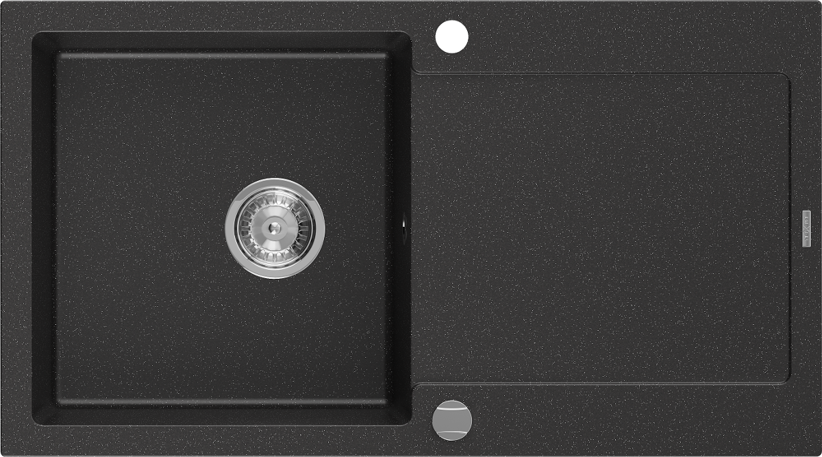 Mexen Leo chiuvetă din granit cu 1 compartiment și picurător 900 x 500 mm, negru/argintiu metalic, sifon cromat
