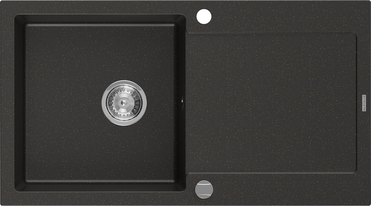 Mexen Leo chiuvetă de bucătărie din granit cu 1 compartiment și scurgător 900 x 500 mm, negru/auriu metalizat, sifon cromat