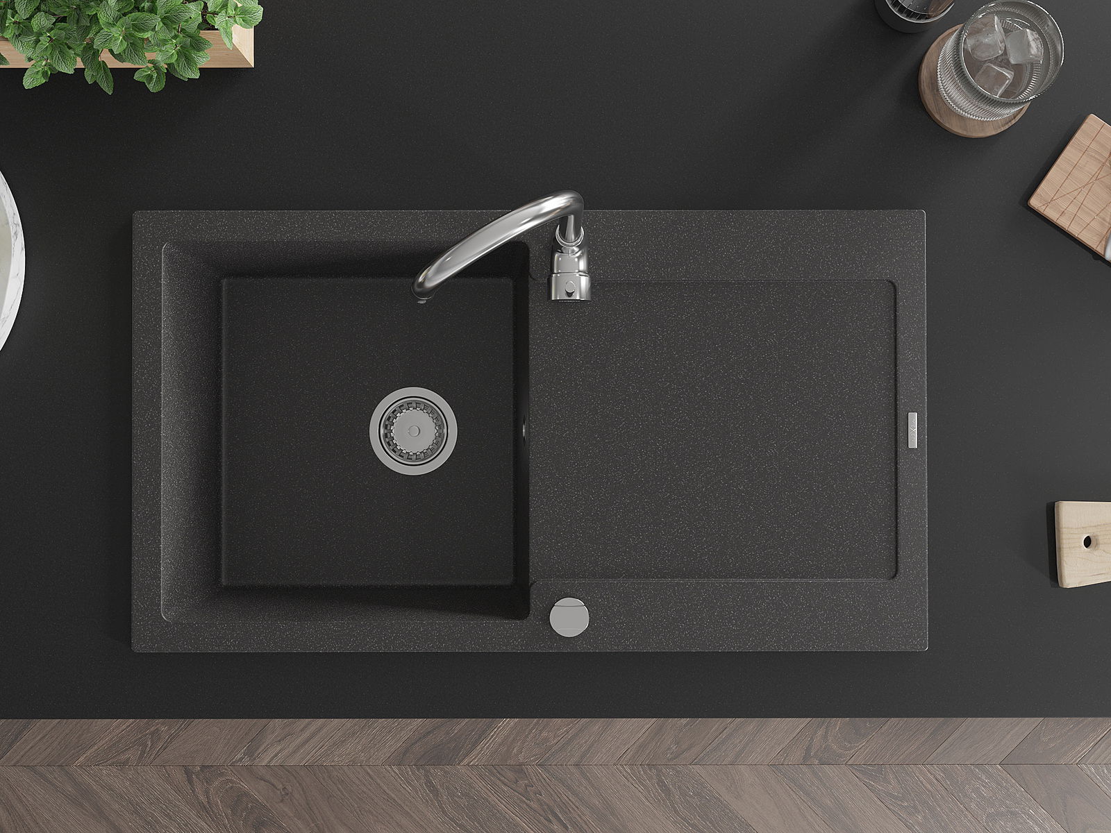 Datorită sistemului de montare universală, chiuveta este reversibilă, iar scurgerea poate fi montată pe blat la stânga sau la dreapta. În acest fel, puteți ajusta cu ușurință pagina la nevoile și condițiile dvs.