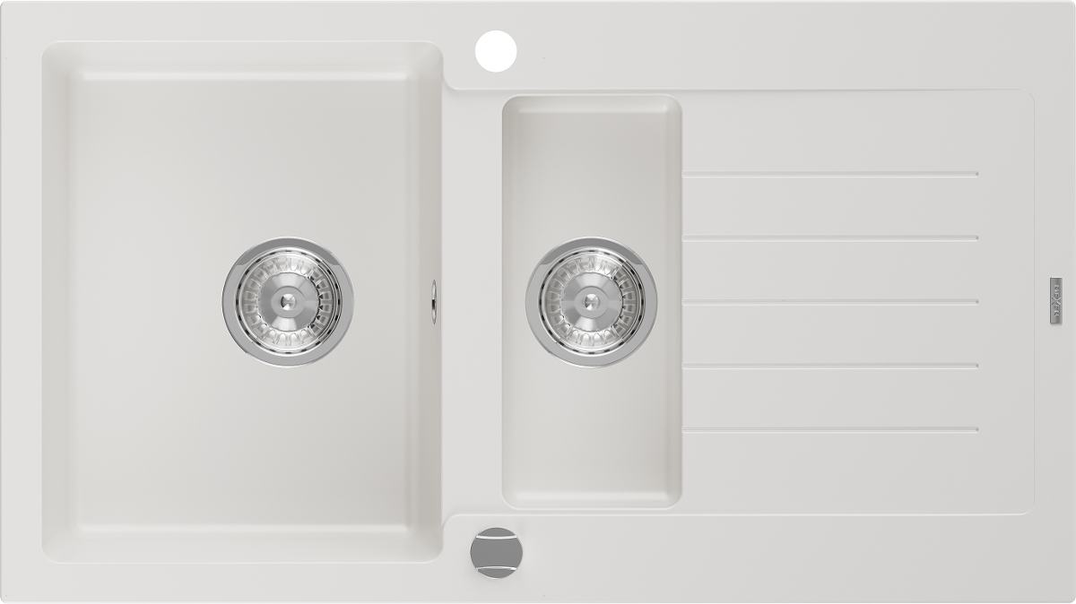 Datorită utilizării sistemului universal de montare, chiuveta este reversibilă, iar scurgătorul poate fi montat pe blat fie pe partea stângă, fie pe partea dreaptă. În acest fel, poți adapta ușor partea la nevoile și condițiile tale.