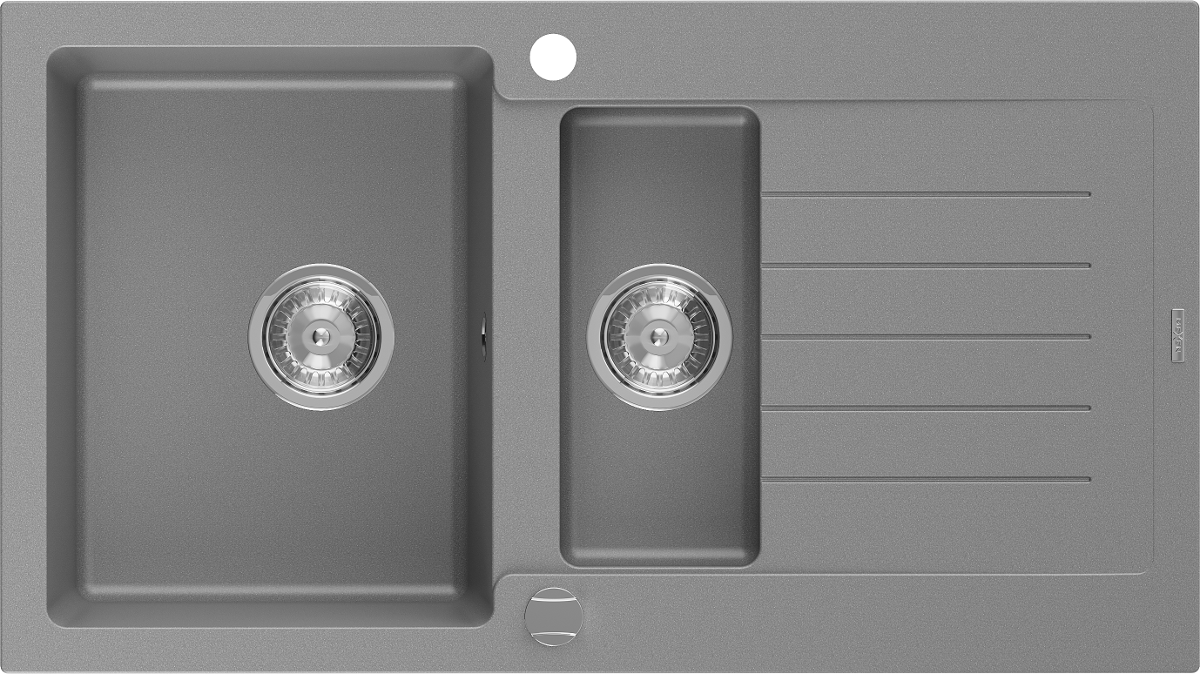 Mexen Matias chiuvetă din granit cu 1,5 cuve cu picurător 900 x 505 mm, gri, sifon crom - 6502901505-71