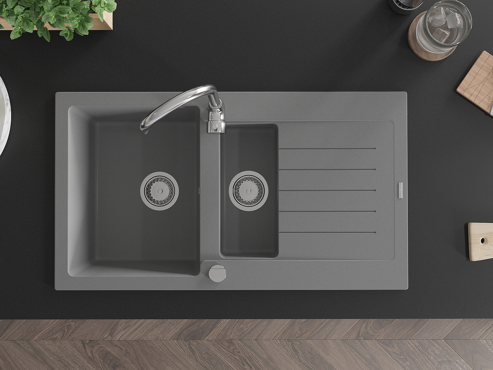 Datorită sistemului de montare universală, chiuveta este reversibilă, iar scurgerea poate fi montată pe blat la stânga sau la dreapta. În acest fel, puteți ajusta cu ușurință pagina la nevoile și condițiile dvs.