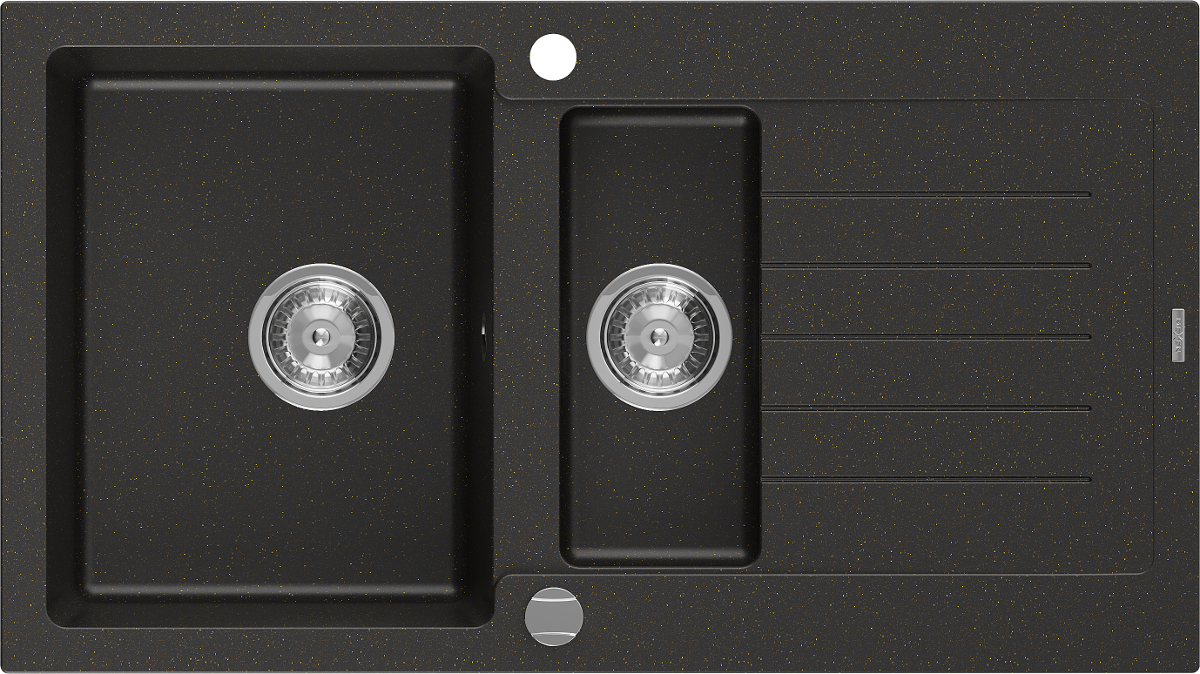 Mexen Matias chiuvetă granit 1,5 compartimente cu picurător 900 x 505 mm, negru/auriu metalizat, sifon crom - 6502901505-75