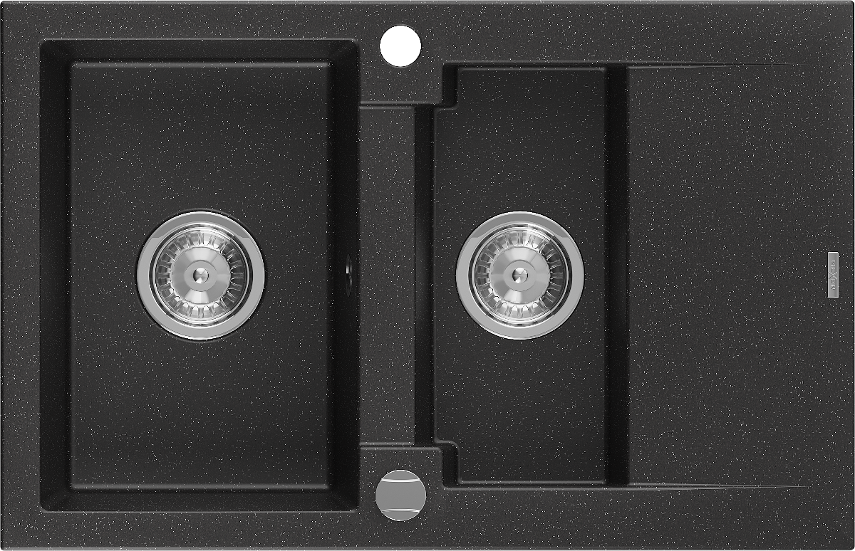 Mexen Gaspar chiuvetă de granit cu 1,5 cuve și scurgător 737 x 475 mm, negru/argintiu metalizat, sifon cromat - 6507731505-73