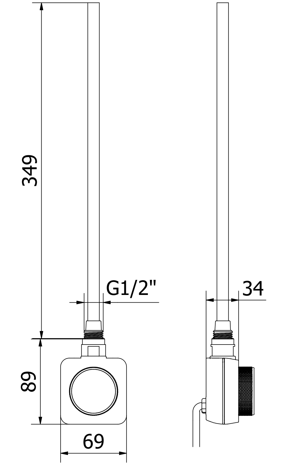 Lungimea elementului de încălzire: 349 mm