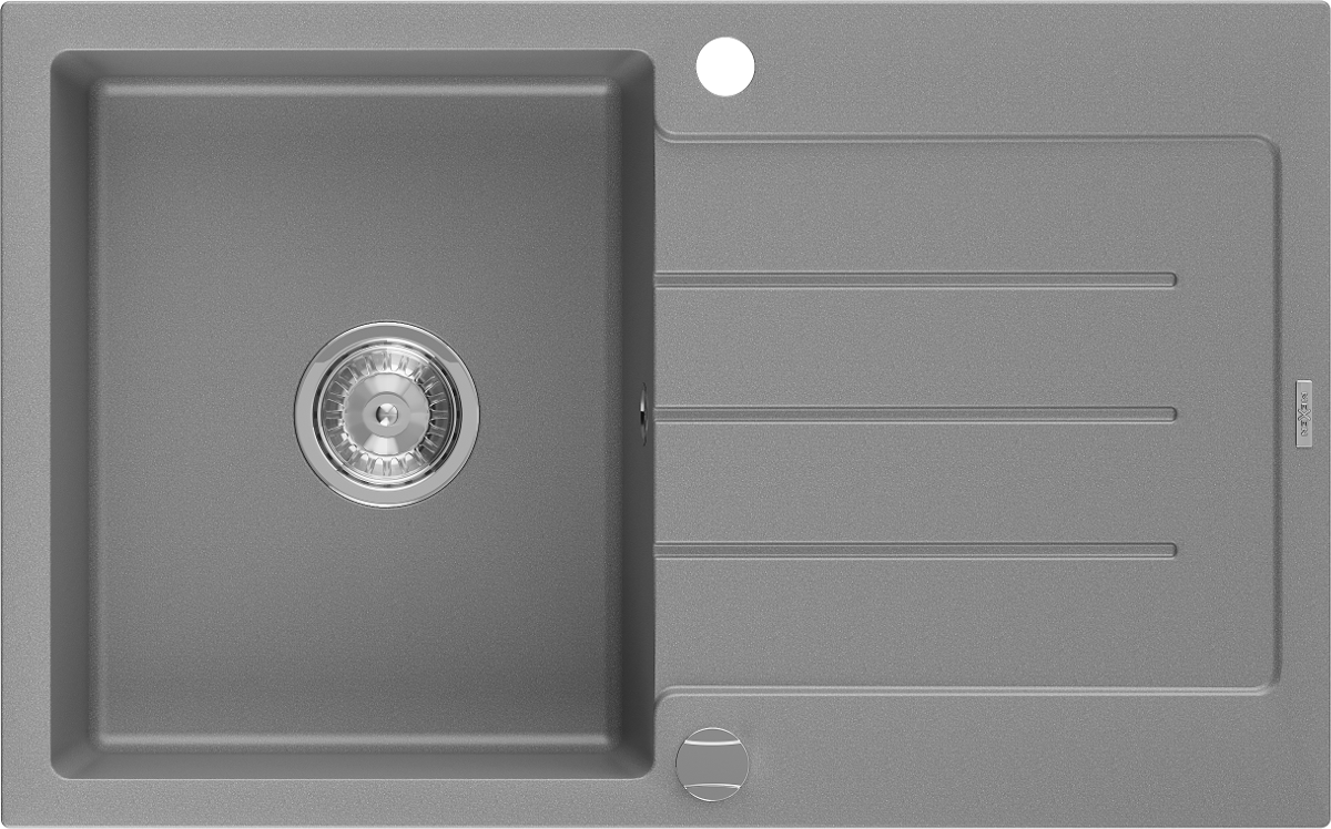 Mexen Bruno chiuvetă de granit 1-cameră cu scurgător 795 x 495 mm, gri, sifon crom - 6513791010-71