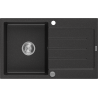 Mexen Bruno chiuvetă de bucătărie din granit cu 1 cuvă și picurător 795 x 495 mm, negru, sifon crom - 6513791010-77