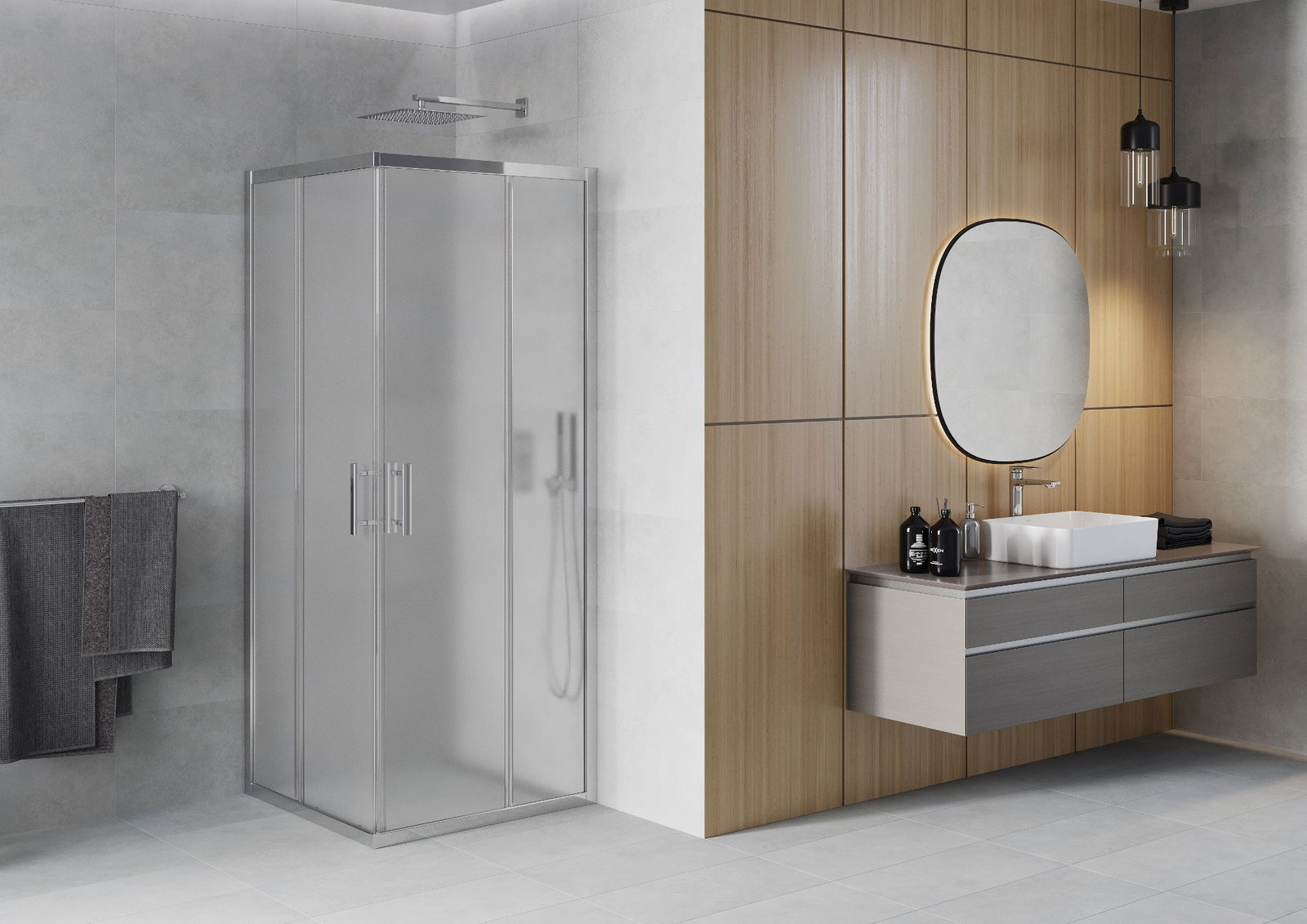 Ușile glisante se deplasează în jurul ghidurilor speciale și nu necesită spațiu suplimentar pentru a le deschide, astfel încât vor funcționa în băi mai mici. Datorită rolelor duble din plastic durabil, mișcarea lor este fluidă.