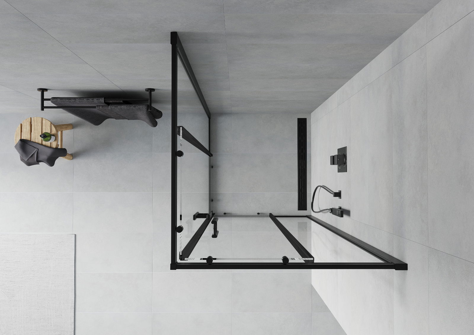 Produsul poate fi montat fie pe cabina de duș, fie direct pe podea, în funcție de nevoi. Metoda de montare universală permite adaptarea produsului la diferite tipuri de băi și configurații de spațiu.