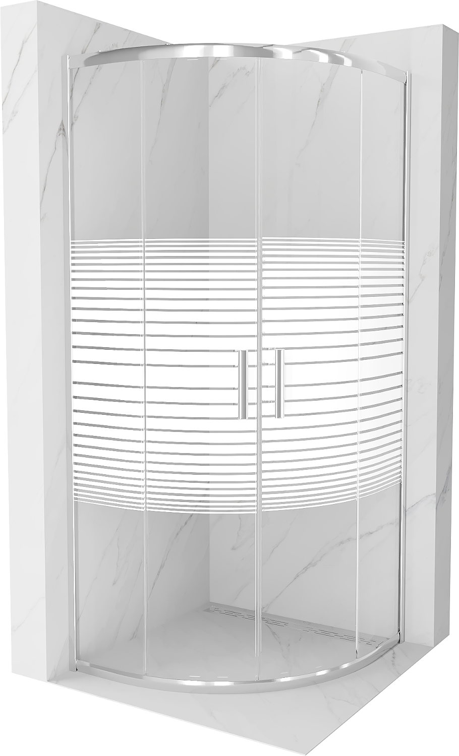 Mexen Rio cabina de duș semirotundă 70 x 70 cm, dungi albe, crom - 863-070-070-01-20