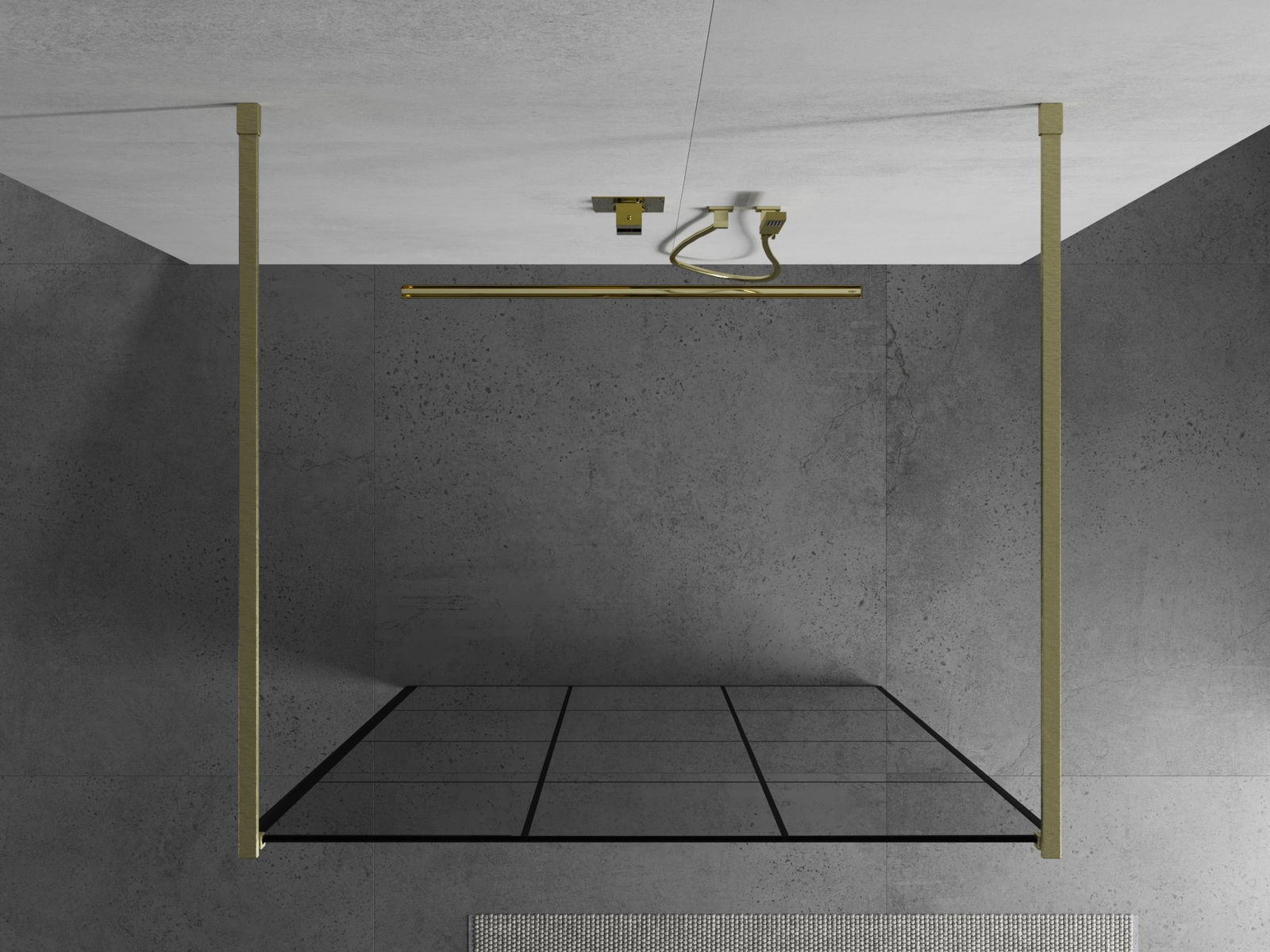 Mexen Kioto perete de duș independent 100 x 200 cm, grilaj negru 8 mm, auriu periat - 800-100-002-55-77