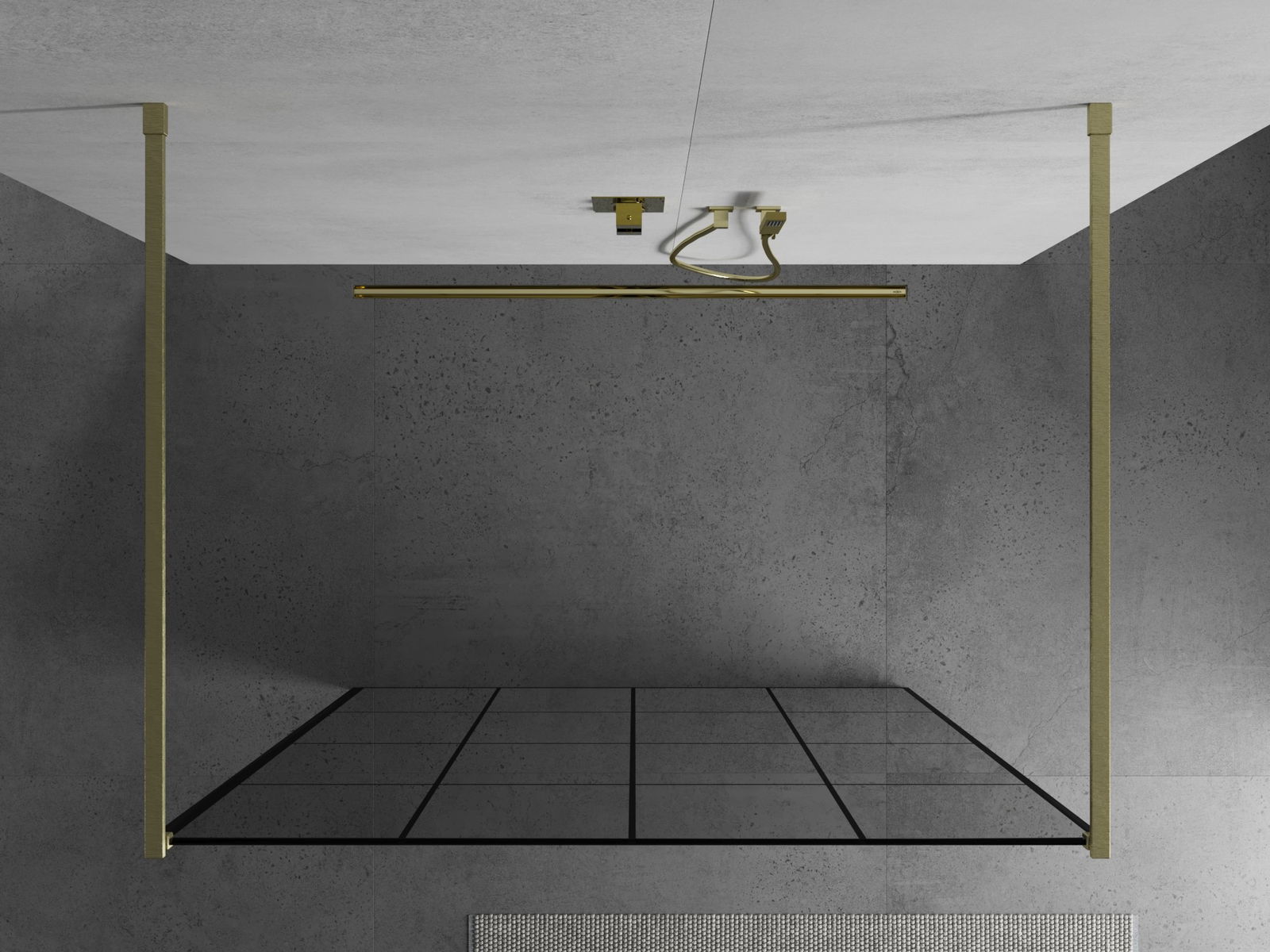 Mexen Kioto panel de duș independent 130 x 200 cm, grilaj negru 8 mm, auriu periat - 800-130-002-55-77