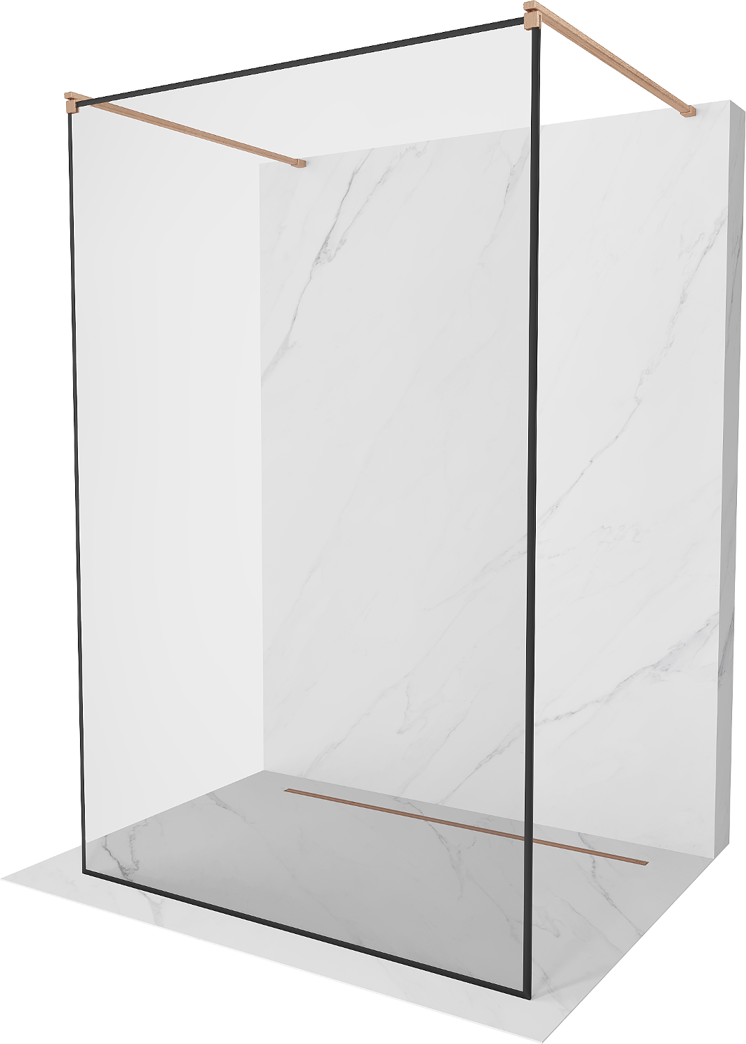 Mexen Kioto perete de duș independent 130 x 200 cm, ramă neagră 8 mm, cupru periat - 800-130-002-65-70