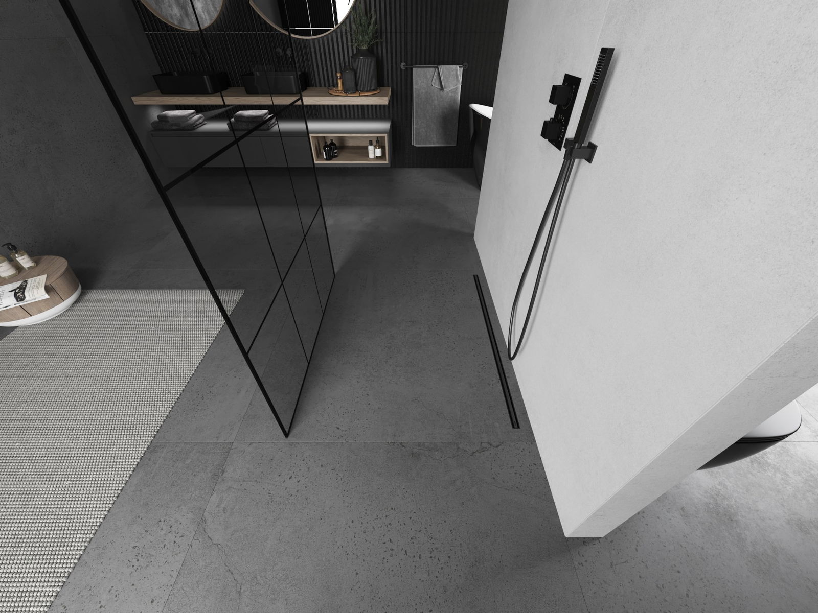 Mexen Kioto panou de duș independent 120 x 200 cm, plasă neagră 8 mm, gri armă periat - 800-120-002-66-77