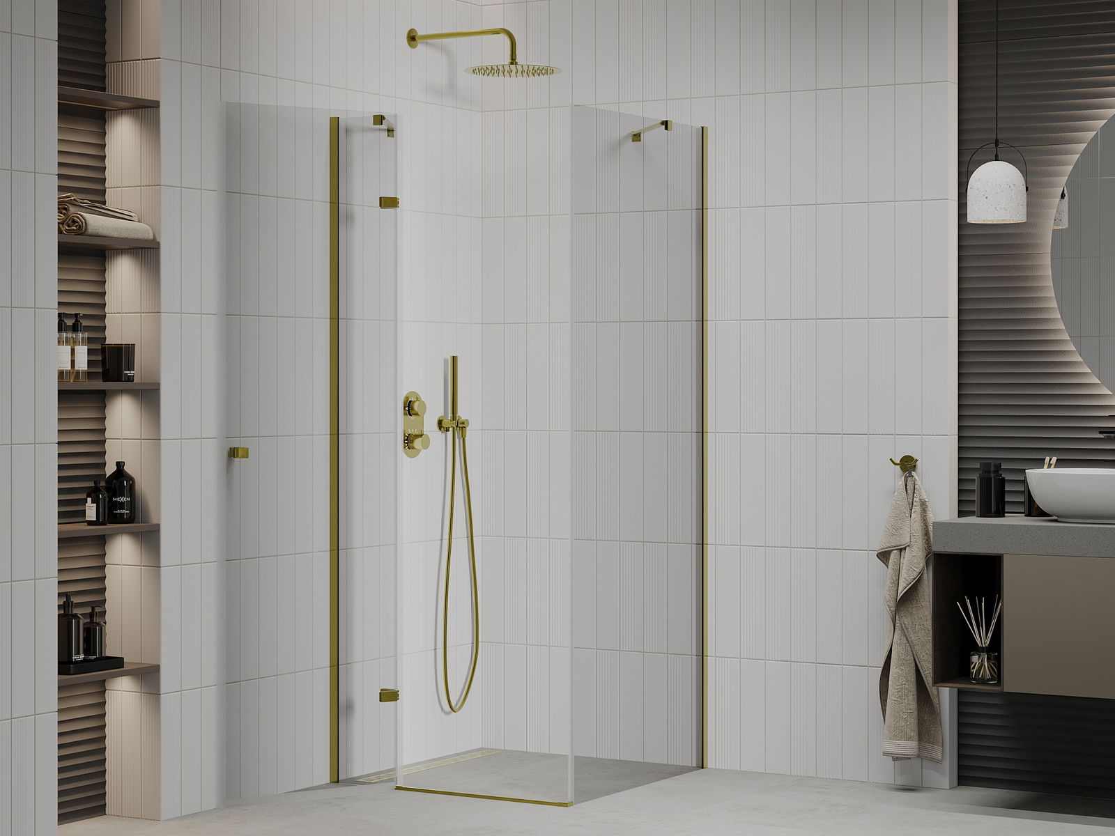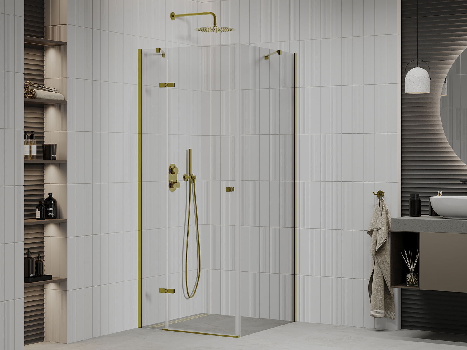 Mexen Roma cabină de duș cu ușă batantă 80 x 80 cm, transparentă, aurie - 854-080-080-50-00