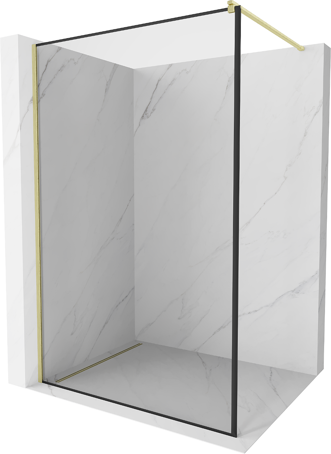 Mexen Kioto perete-duș Walk-in 160 x 200 cm, cadru negru 8 mm, auriu periat - 800-160-101-55-70