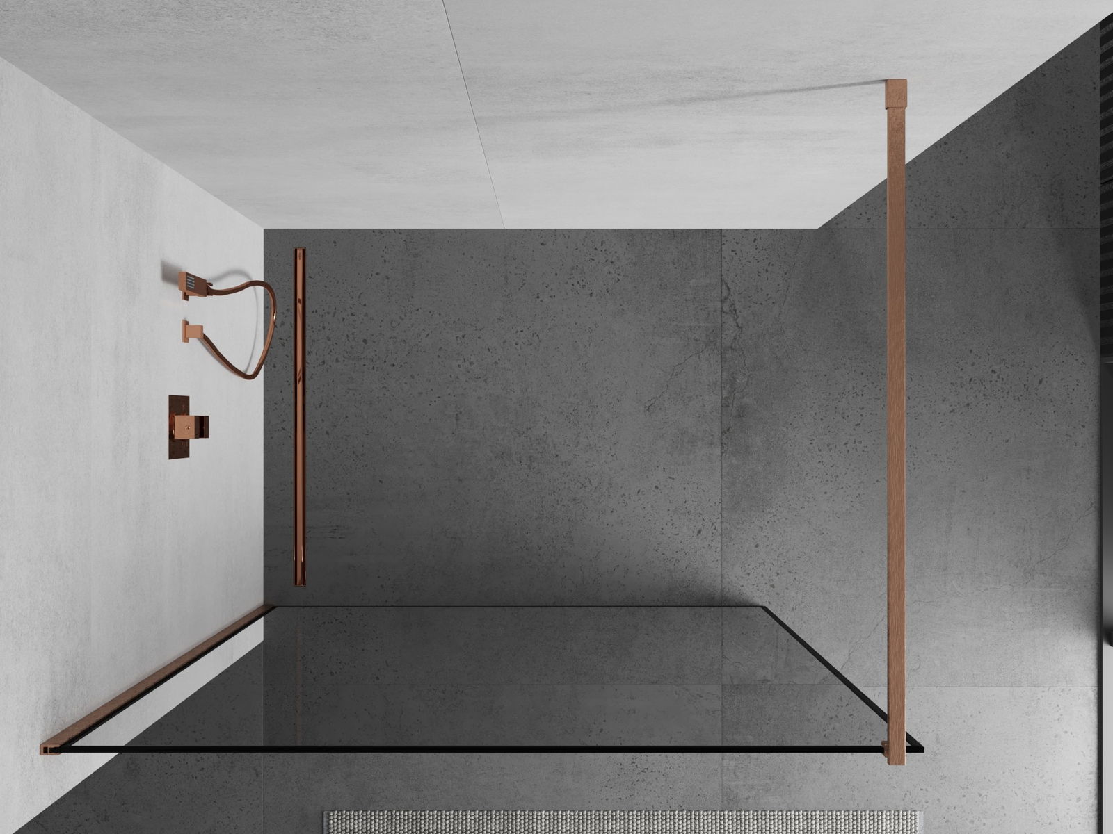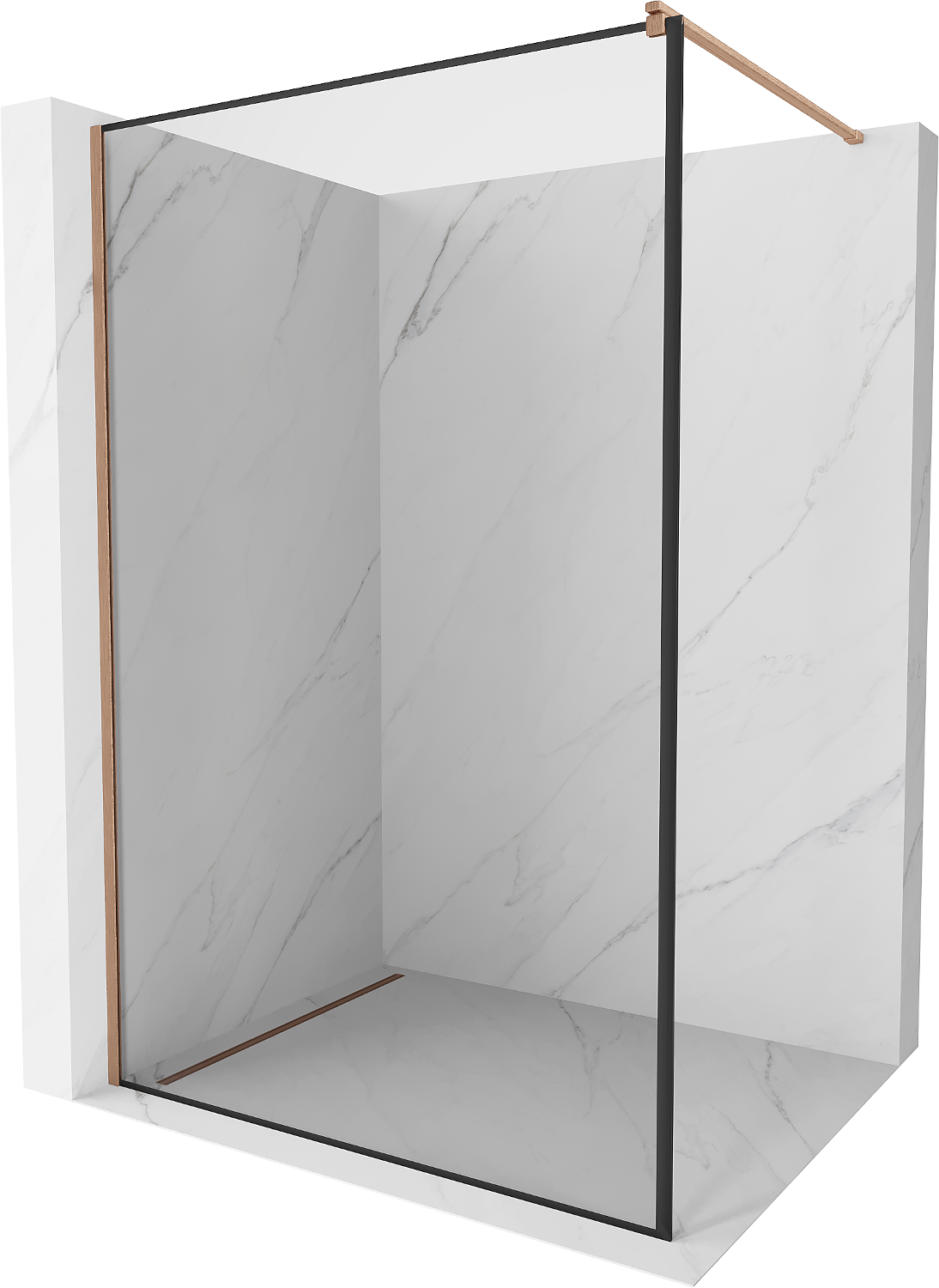 Mexen Kioto Panou de duș Walk-in 150 x 200 cm, ramă neagră 8 mm, cupru periat - 800-150-101-65-70