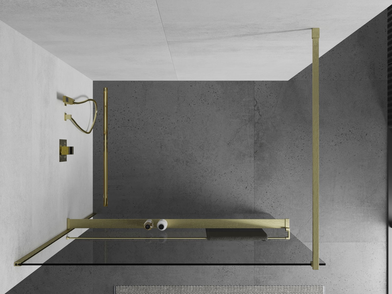 Mexen Kioto+ panou de duș cu raft Walk-in 120 x 200 cm, transparent, auriu periat - 800-120-121-55-00