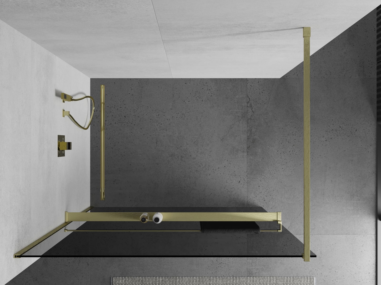 Mexen Kioto+ perete de duș cu raft Walk-in 100 x 200 cm, grafit, auriu periat - 800-100-121-55-40