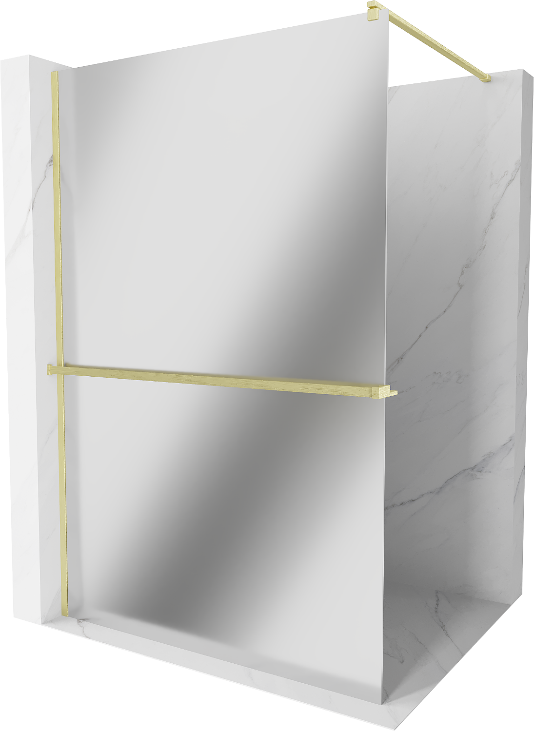 Mexen Kioto+ perete de duș cu etajeră Walk-in 90 x 200 cm, oglindă, auriu periat - 800-090-121-55-50