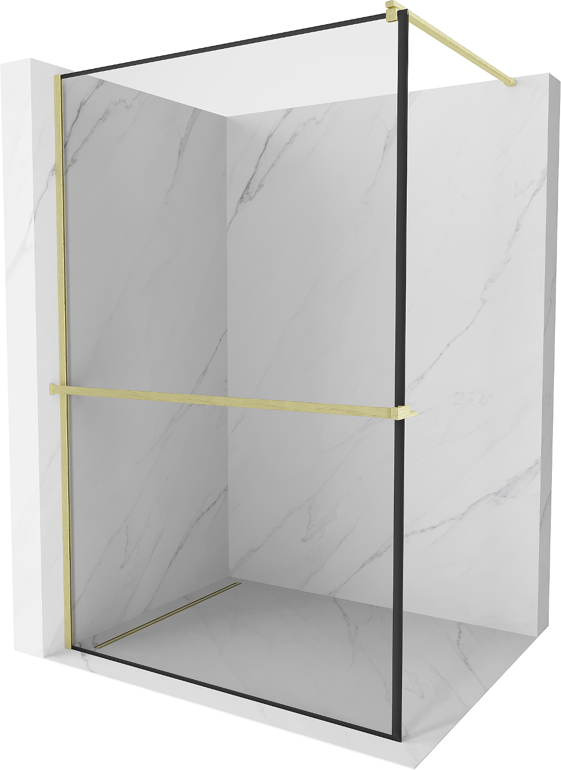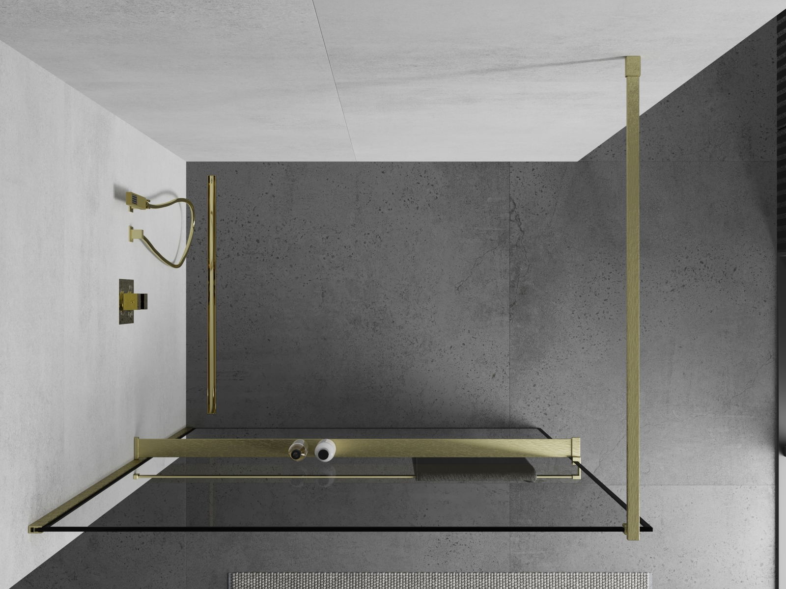 Mexen Kioto+ perete de duș cu raft Walk-in 120 x 200 cm, ramă neagră, auriu periat - 800-120-121-55-70