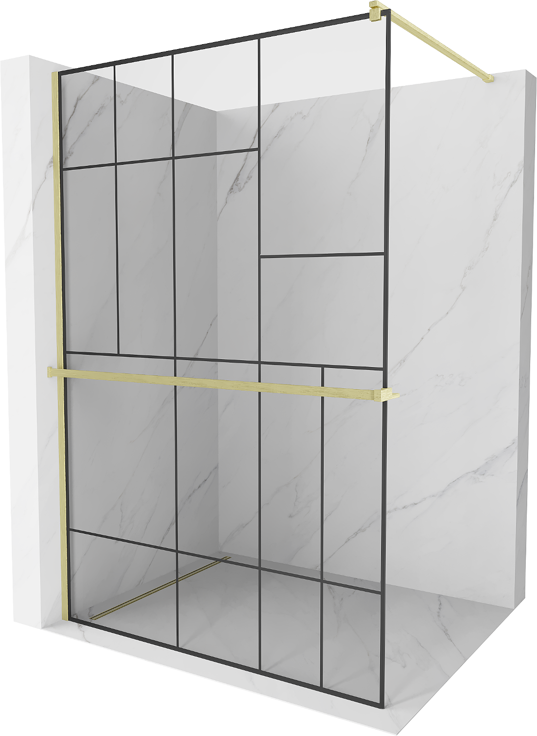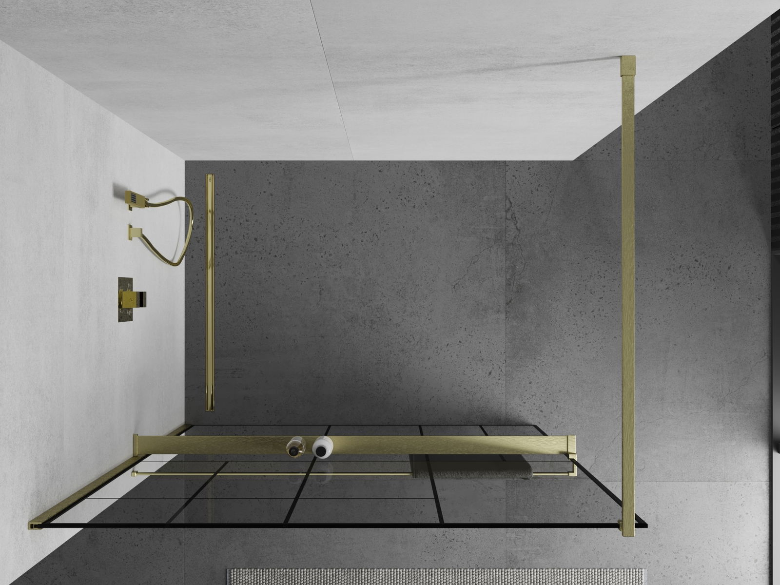 Mexen Kioto+ perete de duș cu raft Walk-in 140 x 200 cm, model negru, auriu periat - 800-140-121-55-78