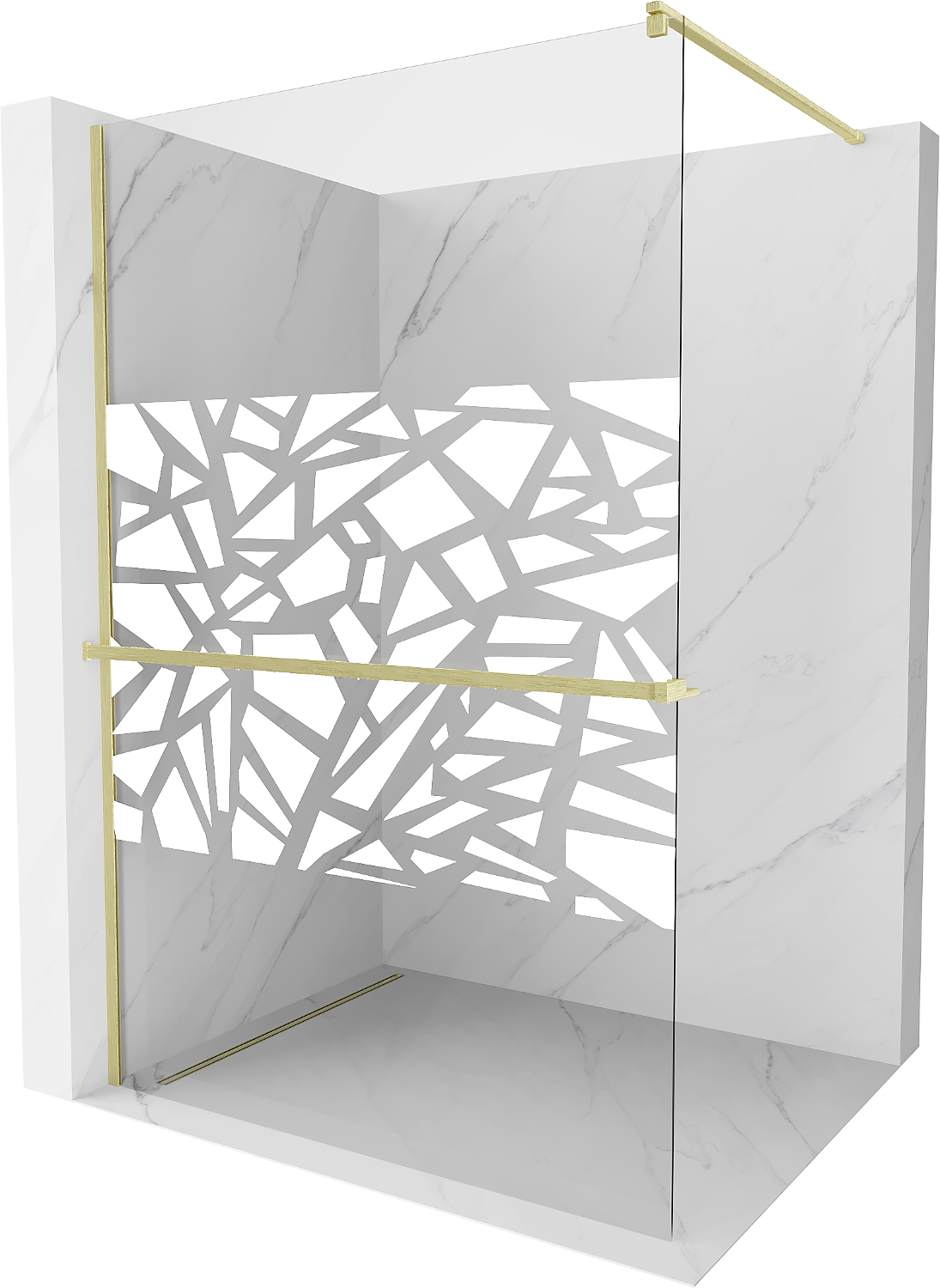 Mexen Kioto+ perete de duș cu raft Walk-in 120 x 200 cm, model alb, aurie periată - 800-120-121-55-85