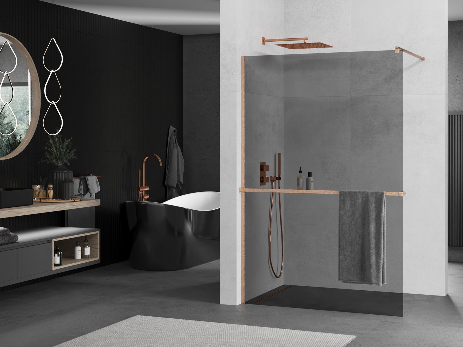 Mexen Kioto+ panou de duș cu raft Walk-in 100 x 200 cm, grafit, cupru periat - 800-100-121-65-40
