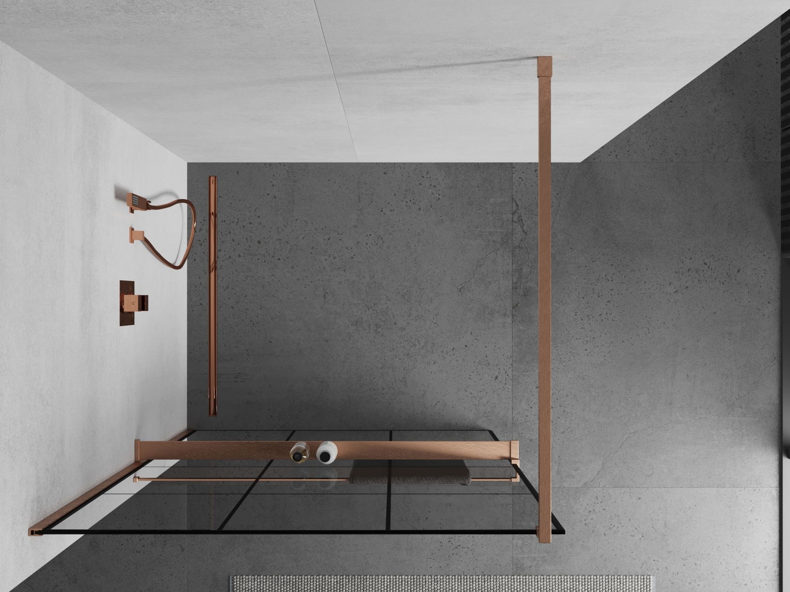 Mexen Kioto+ perete de duș cu raft Walk-in 120 x 200 cm, grilaj negru, cupru periat - 800-120-121-65-77