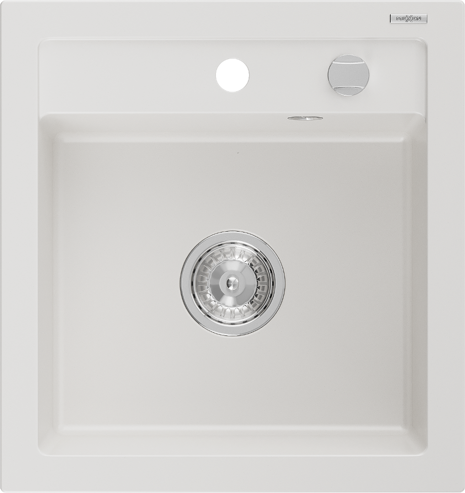 Mexen Vito chiuvetă de bucătărie granit cu 1 compartiment 520 x 490 mm, alb, sifon crom - 6503521000-20