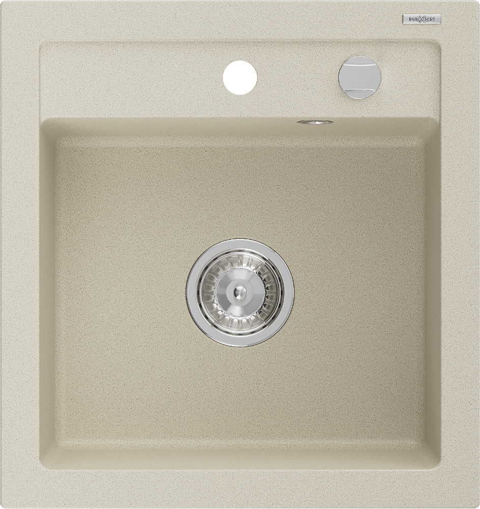 Mexen Vito chiuvetă din granit cu 1 compartiment 520 x 490 mm, bej, sifon cromat - 6503521000-69