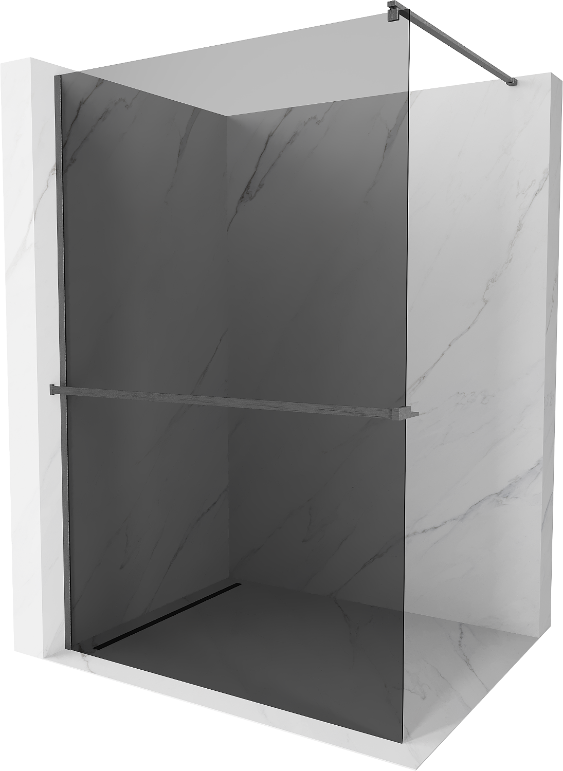 Mexen Kioto+ perete de duș cu raft Walk-in 120 x 200 cm, grafit, gri armă periat - 800-120-121-66-40