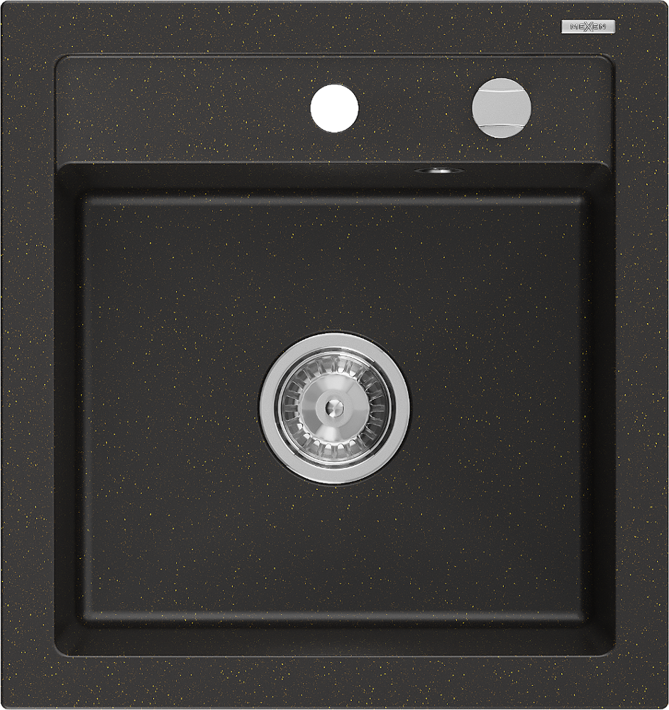 Mexen Vito chiuvetă de bucătărie din granit cu 1 compartiment 520 x 490 mm, negru/auriu metalizat, sifon crom - 6503521000-75