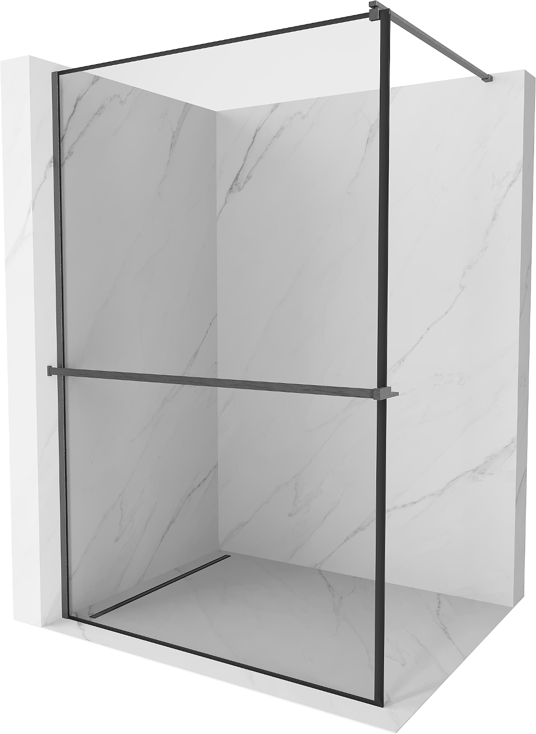 Mexen Kioto+ perete de duș cu poliță Walk-in 110 x 200 cm, ramă neagră, gri armă periat - 800-110-121-66-70