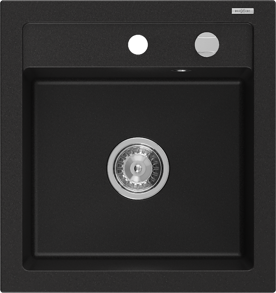 Mexen Vito chiuvetă din granit cu 1 compartiment 520 x 490 mm, negru, sifon crom - 6503521000-77