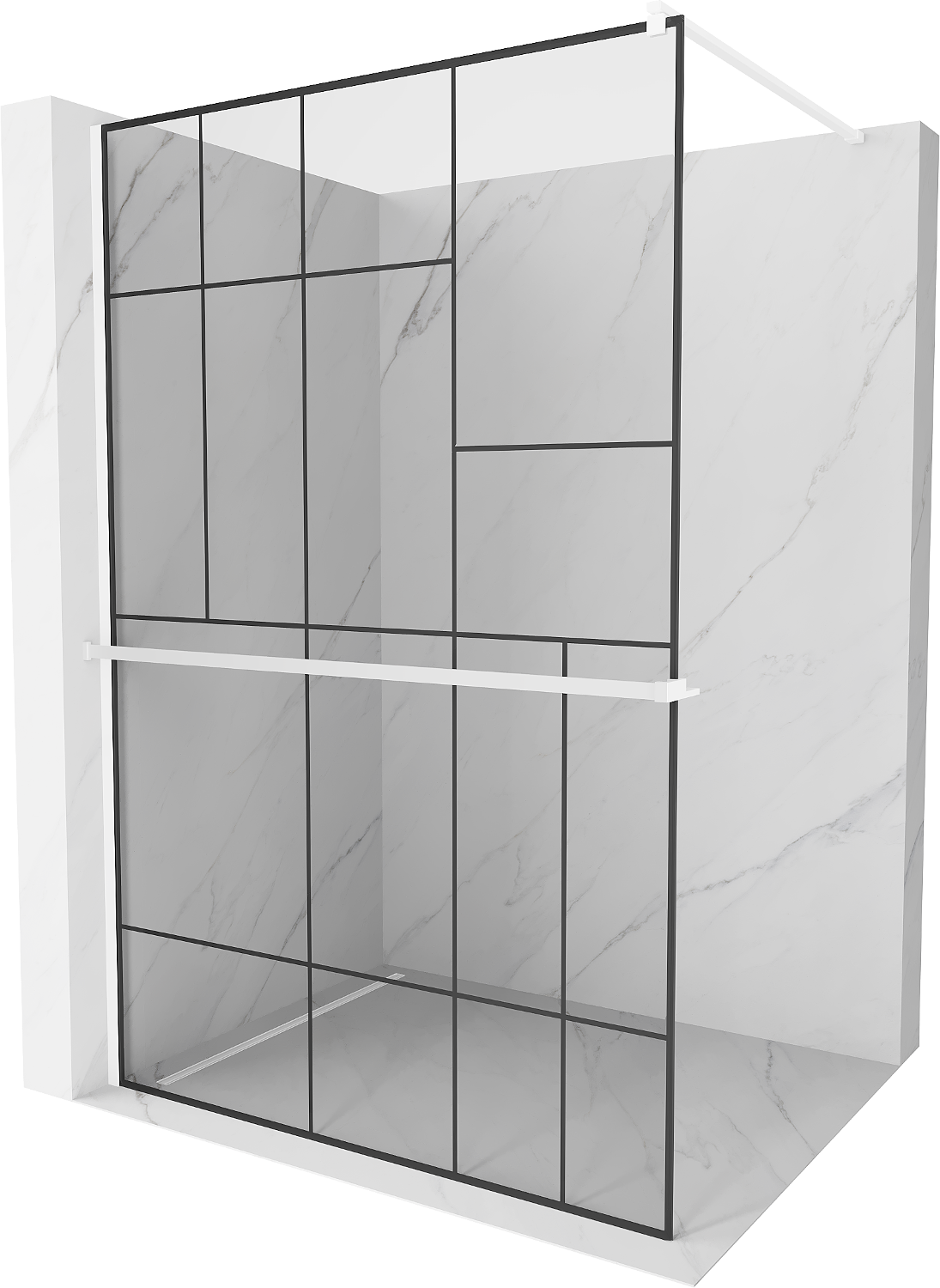 Mexen Kioto+ panou de duș cu raft Walk-in 90 x 200 cm, model negru, alb - 800-090-121-20-78