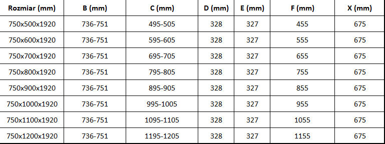 Dimensiune: 75x110 cm (uși 75 cm, perete 110 cm)