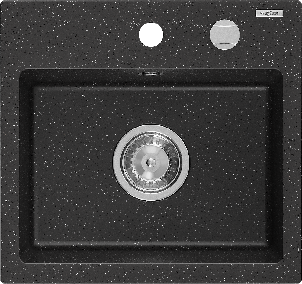 Mexen Milo chiuvetă de granit cu 1 compartiment 435 x 410 mm, negru/argintiu metalic, sifon crom - 6505441000-73