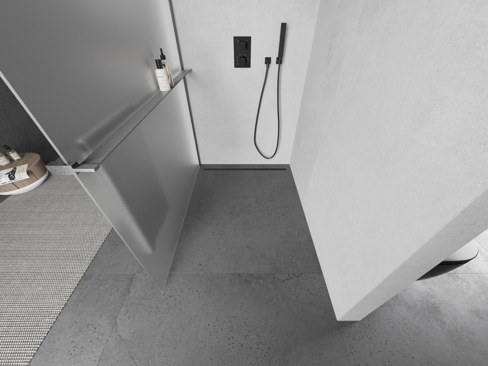 Mexen Kioto+ perete de duș cu raft Walk-in 130 x 200 cm, geam sablat, metal armat - 800-130-121-95-30