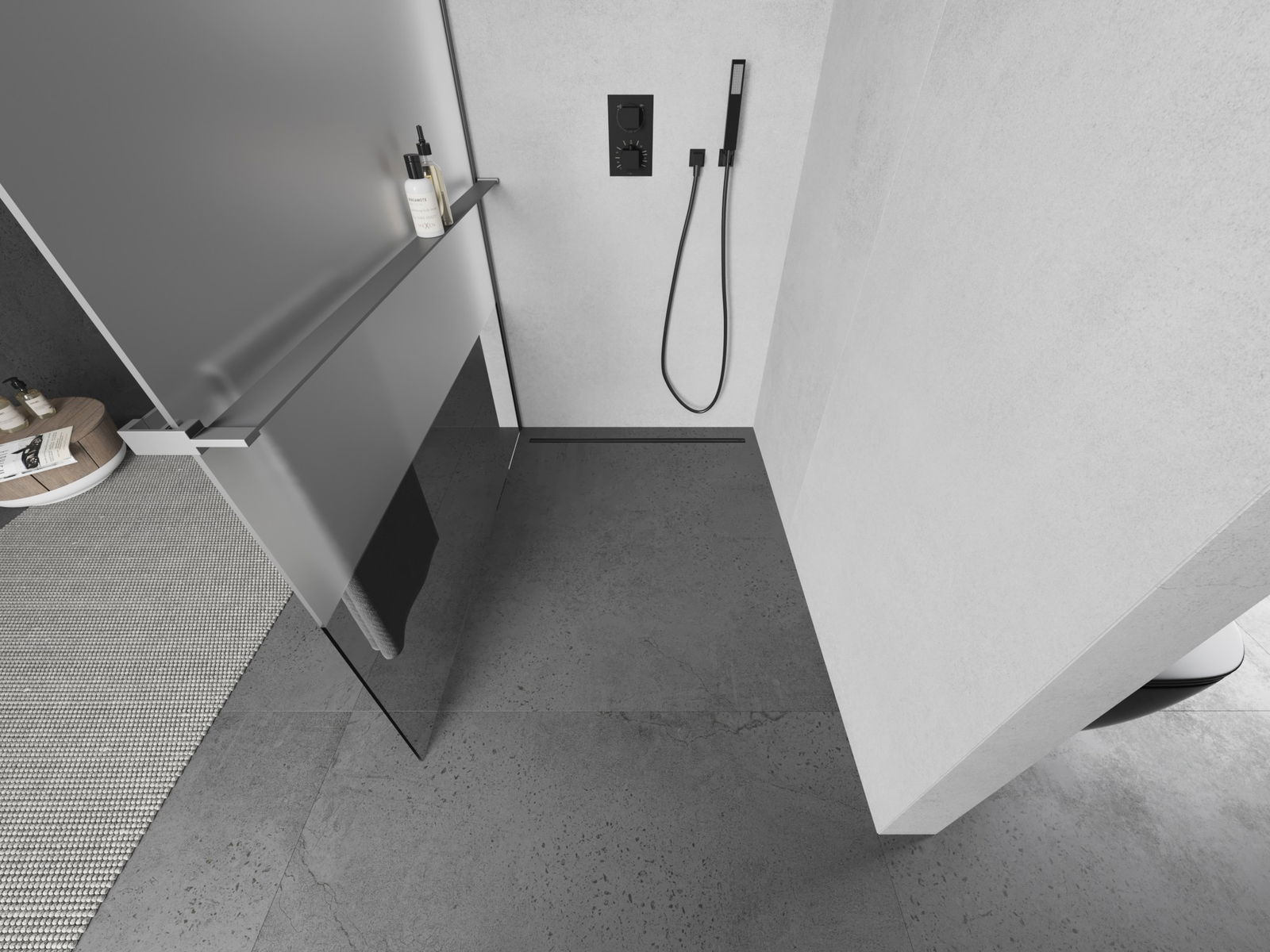 Suportul pentru prosop în peretele cabinei de duș este o soluție foarte practică și confortabilă. În timpul dușului, prosopul este întotdeauna la îndemână, facilitând utilizarea liberă. Este, de asemenea, locul ideal pentru uscarea prosopului.
